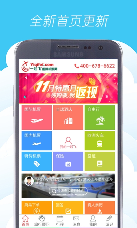 國(guó)際機(jī)票:全球100,000,000+條飛行路線,1,000,000,000+條特惠票價(jià),航線更齊全,價(jià)格更實(shí)惠。全球酒店:國(guó)內(nèi)外超過350,000家酒店,價(jià)格優(yōu)惠,低至2折起。