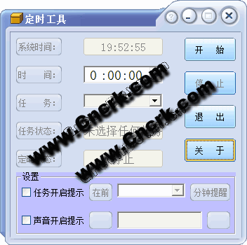 定時(shí)工具 V1.0.0 簡(jiǎn)體中文綠色免費(fèi)版 《定時(shí)工具》主要作用是定時(shí)關(guān)機(jī)、重啟、注銷計(jì)算機(jī),滿足各種對(duì)定時(shí)關(guān)機(jī)有需求的用戶。您可以設(shè)定不同的時(shí)間,讓它自動(dòng)實(shí)現(xiàn)注銷、重新啟動(dòng)、關(guān)機(jī),支持聲音提示功能