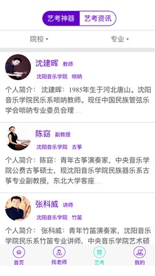 1.找老師,通過靈活的篩選條件,輕松找到合適的老師;2.藝考神器,幫助參加音樂高考的你,輕松找到合適的藝考輔導(dǎo)老師,更讓你有機會聯(lián)系上報考院校的招生老師;