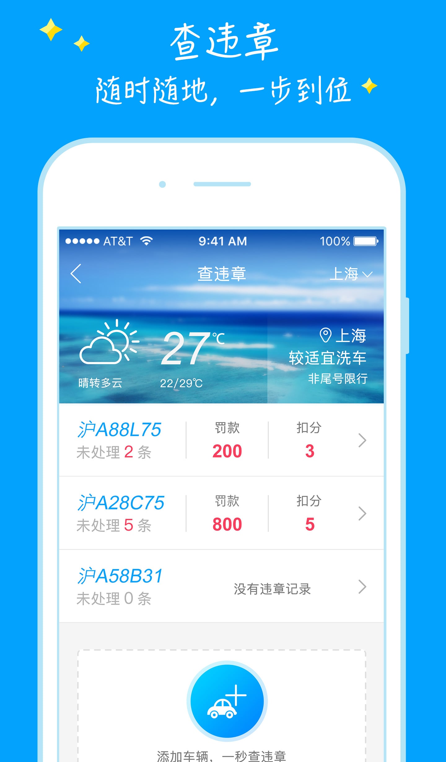 【便捷】直接輸入車輛信息可隨時(shí)查詢違章信息;支持新浪、微信、QQ多種方式登錄;【實(shí)時(shí)】違章后,會(huì)第一時(shí)間告知您愛車的違章信息、扣分和罰款;