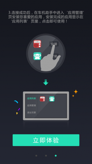 手機安裝此應用后,通過藍牙和USB數(shù)據(jù)線與車載終端成功連接,您就可以方便的在奇瑞車載終端上瀏覽并操作奇瑞合作的第三方手機應用(例如蜻蜓FM、考拉FM等)以及用戶自行安裝的手機應用。