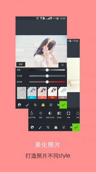 裁剪、旋轉(zhuǎn)、銳化、曝光等基礎(chǔ)操作一應(yīng)俱全;多種濾鏡特效和水印供您自由選擇,打造照片不同style!5大類型超級(jí)神器筆刷,免費(fèi)供您無限使用!