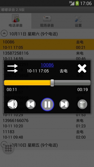 1.三種電話錄音模式:自動錄音、電話結(jié)束后詢問、手工錄音。可以根據(jù)自己的實際需要來選擇。2.內(nèi)置播放器:回放時可以選擇通過聽筒或揚(yáng)聲器來播放,適合在辦公室等多人場合下或單獨(dú)場合下的使用。