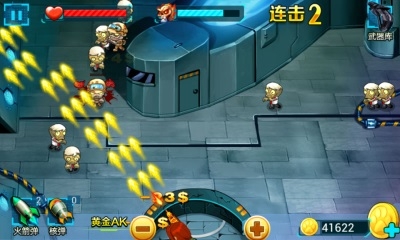 游戲操作很簡單,按住屏幕引導機槍的射擊方向,屏幕左下角有特殊的武器效果,當能量滿了以后按住并拖到需要釋放的地方就能使用了,游戲越到后面僵尸就越難打,這時你就需要通過屏幕正下方的紅色箭頭切換武器了。海量的地圖,多樣的僵尸軍團,血脈噴張的BOSS戰(zhàn)役,更多的挑戰(zhàn)和獎勵等著你來征服!