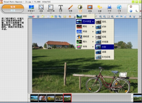 當(dāng)用戶將圖像打開到工作區(qū)之后,即可開始編輯與改善。編輯模式提供了許多工具,讓您針對項目來準(zhǔn)備圖像、添加特殊效果或進行修飾。