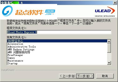 5、設(shè)置程序文件夾名稱,默認為“Ulead Photo Express 6”