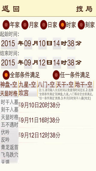 2.起局多樣性,具有以下起局方式:年家奇門;月家奇門;日家奇門;時家奇門;刻家奇門;自定義奇門(自己選擇布局);搜局(搜索一段時間符合條件的奇門局)。每種方式配有報數(shù)起局可供選擇。