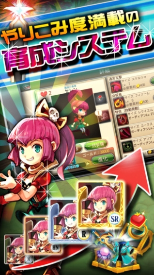 關(guān)于角色方面的育成手段有強(qiáng)化,進(jìn)化,技能開放,裝備等等。玩家可以在游戲中一邊摸索一邊育成角色。
