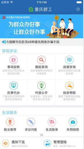 重慶群工app此乃重慶市委組織部推出的重慶信息化政務(wù)服務(wù)平臺(tái),重慶市民們通過(guò)重慶群工app反應(yīng)關(guān)于重慶的大小民生事情,重慶市各級(jí)個(gè)級(jí)政府在重慶群工app收到的問(wèn)題將在七個(gè)工作日內(nèi)為市民們處理。【軟件功能特點(diǎn)】