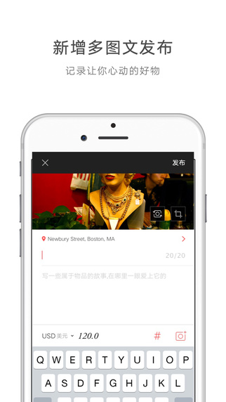 發(fā)布屬于你的物品故事,支持單圖文故事分享,豐富物品屬性添加,社交平臺(tái)分。
