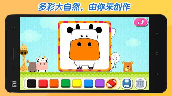 游戲針對(duì)嬰幼兒設(shè)計(jì),符合其對(duì)繪畫的基本需求。熊孩子愛涂鴉突破傳統(tǒng)涂鴉應(yīng)用的束縛,不僅包含傳統(tǒng)的涂鴉模式,并且針對(duì)孩子的正常認(rèn)知精心設(shè)計(jì)了藝術(shù)填色部分,針對(duì)孩子所喜聞樂見的一些事物進(jìn)行創(chuàng)造性的藝術(shù)填色,同時(shí)還可以對(duì)孩子的作品進(jìn)行保存讓我們共同為孩子留下童年美好的記憶。后續(xù)我們更規(guī)劃多種多樣的填色更新——花鳥魚蟲,天文地理,讓孩子在歡樂的涂鴉中學(xué)到更多的知識(shí)。
