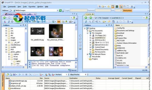 SmartFTP 是一套以 IE 及資源管理器的概念、簡(jiǎn)易操作的傳輸程序,可用來(lái)做Local 端的文件管理,對(duì)于 FTP 站更如同資源管理器般的操作方式,支持鼠標(biāo)右鍵的各項(xiàng)快捷功能,且對(duì)于站臺(tái)更以 IE 的“收藏夾”方式來(lái)管理,支持同時(shí)登陸多個(gè)站臺(tái)。另有一項(xiàng)強(qiáng)悍的功能:可使用FTP Search 來(lái)搜尋文件,而直接開(kāi)啟站臺(tái)下載。界面方面:提供浮動(dòng)式功能鍵、支持多窗口排列、更可更改文字顏色及標(biāo)題列漸進(jìn)色彩,動(dòng)作上也可有聲音的提示功能。