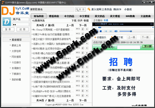 DJYYY音樂盒上線,具有“速度超快”、“音質(zhì)超高”、“完全免費”三大特點.DJ舞曲無需下載,一點即播。(綠色版軟件)絕無病毒、無插件,請放心使用。