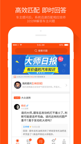 “汽車大師”界面直觀,操作簡單,讓每個車主都能輕松上手,汽車有問題,輕松提問。