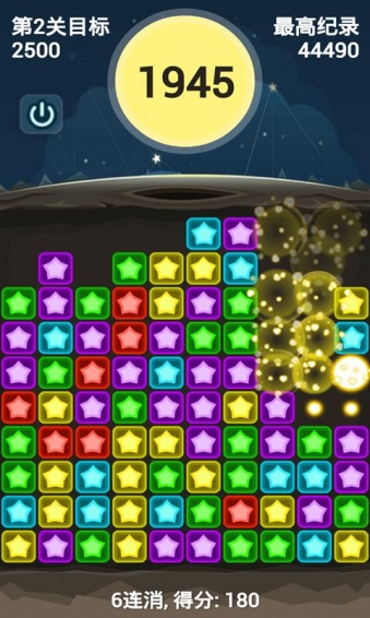 全民最愛游戲,夢幻星星消消樂!!! 極易上手,更是愛不釋手。點點點,消消消。 每次消除的個數(shù)越多,得分越高,最后剩下10個以內的,可以獲得獎勵分數(shù),這能讓你保持高分過關,提高記錄。 快來和大家比比吧。