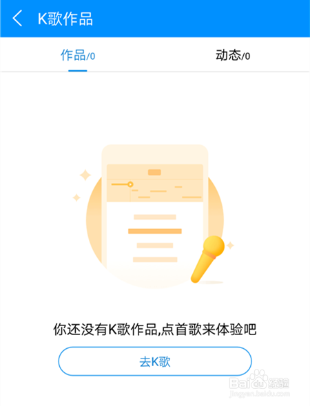 點擊K歌作品,下拉找到去K歌,進入后,可以進行清唱或者合唱等,K歌曲目可以自行選擇。