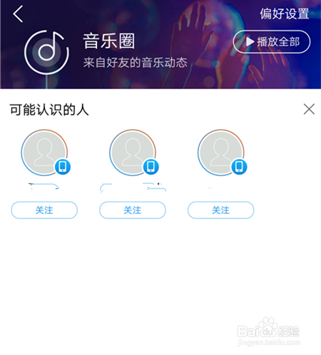 點擊音樂圈,可以看到好友的音樂動態(tài)。選擇其中的一位好友進入,可以看到對方的自建歌單,選擇播放即可。