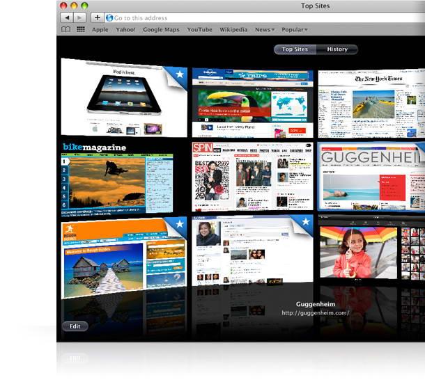 標(biāo)簽視圖能讓你享受大畫面的瀏覽體驗(yàn)。只需雙指開合,即可查看所有打開的標(biāo)簽;左右輕掃,即可切換標(biāo)簽;輕點(diǎn)標(biāo)簽,即可訪問相關(guān)網(wǎng)站。Multi-Touch 使標(biāo)簽視圖成為極其自然而又充滿樂趣的瀏覽方式。