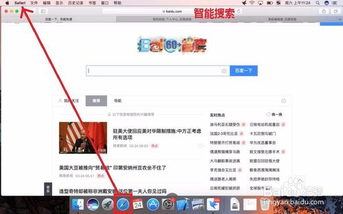 網(wǎng)頁導(dǎo)出為PDF:1.回到電腦桌面,選擇Dock上的Safari瀏覽器,點(diǎn)擊打開,然后隨便打開一個(gè)網(wǎng)頁,如下: