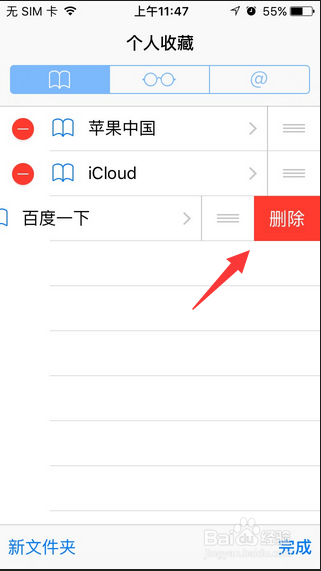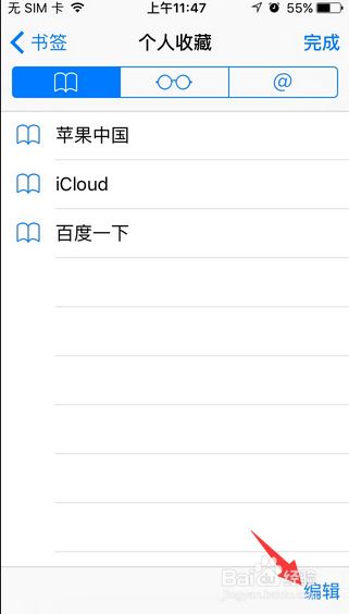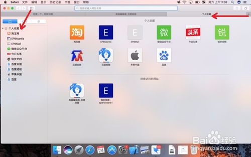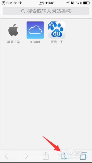 5.另外,如果想刪除掉設(shè)置的這個(gè)主頁時(shí),在safari游覽器頁面上點(diǎn)擊【書】圖標(biāo)進(jìn)入里面,打開【個(gè)人收藏】。