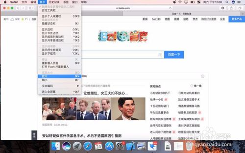 8.在網(wǎng)頁中閱讀文章時(shí)可以使用command+加號(hào)鍵(+)來放大網(wǎng)頁,也可以在觸控板上張開手指來放大網(wǎng)頁。兩根手指在觸控板上上劃或下劃來滾動(dòng)查看網(wǎng)頁。safari會(huì)操作之后就會(huì)覺得也挺好用的呢!