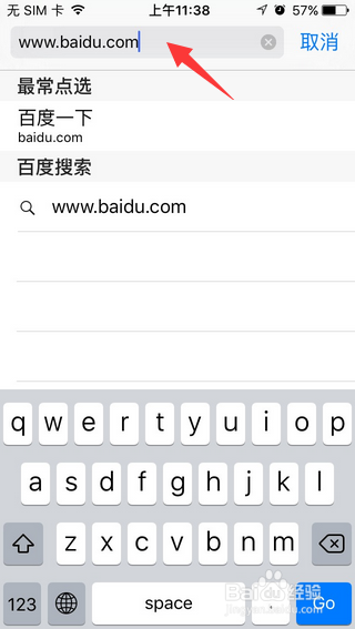 1.首先打開safari游覽器,在游覽器界面上方輸入需要設(shè)置主頁的網(wǎng)站網(wǎng)址。例如:百度www.baidu.com。