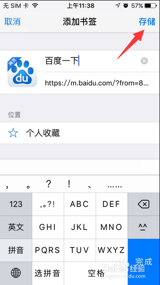 3.然后選擇【添加書簽】,跳轉(zhuǎn)頁面后點(diǎn)擊右上角【存儲(chǔ)】就可以將網(wǎng)址保存起來。