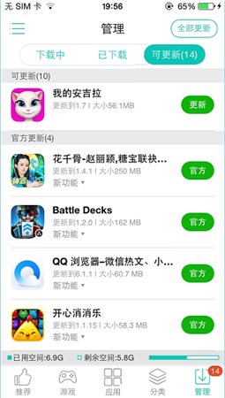 5、進(jìn)入管理界面,用戶(hù)可以對(duì)自己手機(jī)上的軟件及游戲進(jìn)行更新