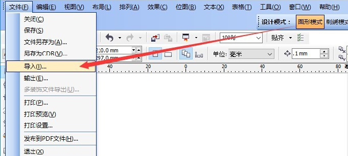點擊菜單欄【文件】命令,在點擊【導(dǎo)入】,找到要導(dǎo)入的矢量圖,支持cdr ai dwg等常見的矢量圖文件
