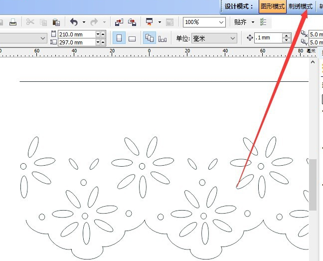 在花樣設(shè)計窗口置中現(xiàn)行針 F6