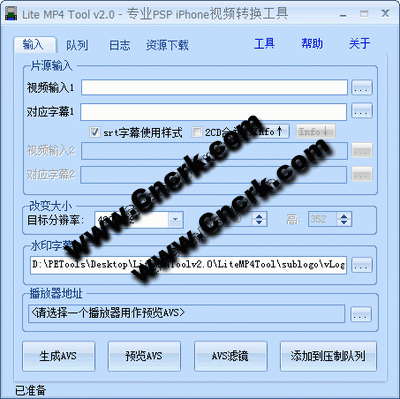 Lite MP4 Tool是完全免費(fèi)綠色軟件 ,無需安裝即可使用。它是一個集自動生成avs并壓縮輸出MP4AVC格式(支持PSP、iPhone播放)視頻格式轉(zhuǎn)換工具。其主要輸出的MP4格式為[PSP+iPhone]480X272 Baseline@L1.3。適用于PSP全型號(包括PSP3000)及iPhone。這種MP4格式也是當(dāng)今掌上設(shè)備的主流格式,當(dāng)然像M8設(shè)備也是支持的。使用本工具讓你可以花最短的時間輕松的制作出專業(yè)壓制組制作出來的作品。