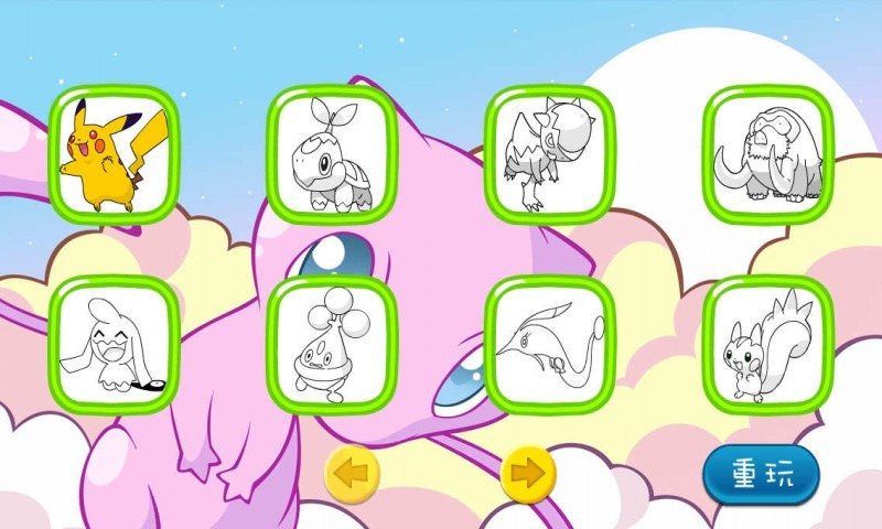 寵物小精靈填色是一款簡單有趣的填色游戲。游戲人物角色取材于經(jīng)典動(dòng)漫寵物小精靈,玩家們可以拿起手中調(diào)色盤根據(jù)自己的喜好來DIY最為漂亮的寵物寶貝,是時(shí)候發(fā)揮你的想象力和創(chuàng)造力了!