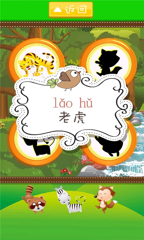 小老虎識動物手機(jī)版是一款充滿童趣的兒童識字游戲,游戲中玩家要幫助小巧虎去認(rèn)識各位動物朋友,每一個小動物都配有各自的真人發(fā)音以及識別度極高的頭像,讓寶寶能高高興興的增長自己對世界的認(rèn)知,達(dá)到早教的效果。