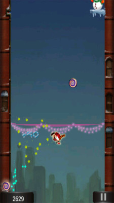 神偷跳躍是一款休閑動作游戲,玩家是扮演一名退役多年的超人,已經(jīng)做回平民身份,還搬到郊區(qū)和他們的三個孩子過起了平淡的普通生活.主角十分渴望重溫以前那種出生入死的超人生活。機(jī)會終于來了。這一天,得知敵人將要?dú)缛祟惖挠媱?,他認(rèn)為重出江湖的時候到了,超人才能又派上了用場.玩家控制主角不停向上跳,玩家持續(xù)跳躍,與飛來的各種敵人作戰(zhàn),一次擊殺3個同類敵人玩家就會有能力變成各種各樣能力超人,還要避開路上的障礙,在跳躍國產(chǎn)中有機(jī)會得到神盾可以替你抵擋一次傷害,