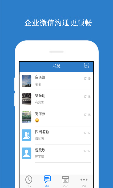 1、消息溝通:無需添加好友,企業(yè)員工之間像企業(yè)微信一樣隨時(shí)進(jìn)行溝通。
