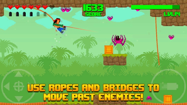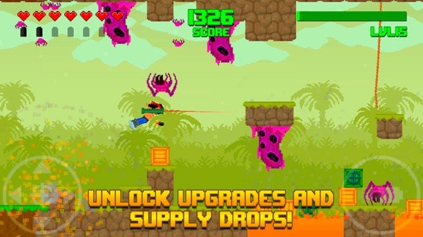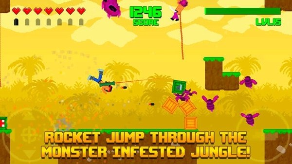 Astrosnout推出了一款全新的橫版過關(guān)游戲《怒火叢林 Hooah!》,玩家在游戲中要扮演一名戰(zhàn)士,穿越充滿障礙的熱帶雨林。本作是一款像素風(fēng)格的冒險(xiǎn)射擊新作,玩家將扮演一名手持榴彈炮的戰(zhàn)士,頭綁紅發(fā)帶,形象很有《第一滴血》系列中Rambo的感覺。在叢林的場景中,遍布著各種巨型蜘蛛、兇猛的殺人蜂等,而玩家手中唯一能夠使用的就是威力強(qiáng)大的榴彈炮。