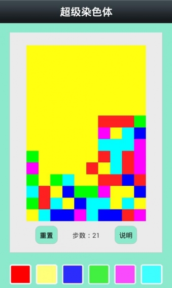 《超級染色體》是一款休閑益智類游戲,你的朋友圈最近有沒有經(jīng)歷《圍住神經(jīng)貓》《小蘋果》《看你有多色》迎來了《超級染色體》的新毀眼時代。你瞎了沒?這是一款完全免費的小游戲,小巧有趣,操作簡單,容易上手,看似簡單,其實不然。游戲畫面十分簡單,從左上角的色塊開始,將所有色塊染成同一顏色,就算贏。不過光贏還不算要看誰用的時間少步數(shù)少才算牛哦。【游戲特點】