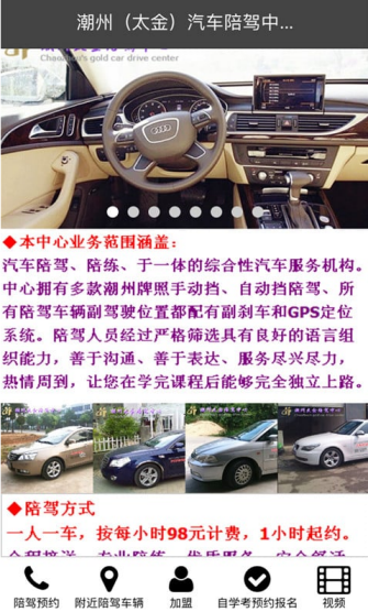 潮州陪駕幫您輕松找到周邊好陪練師傅!此軟件具有(陪駕預(yù)約,附近陪駕車輛查詢,私家車和教練車加盟,C1駕駛證自學(xué)考網(wǎng)上報(bào)名,陪駕教學(xué)視頻)等功能是潮州市太金汽車陪駕中心打造中國(guó)最具專業(yè)性的汽車陪駕軟件。【軟件特點(diǎn)】