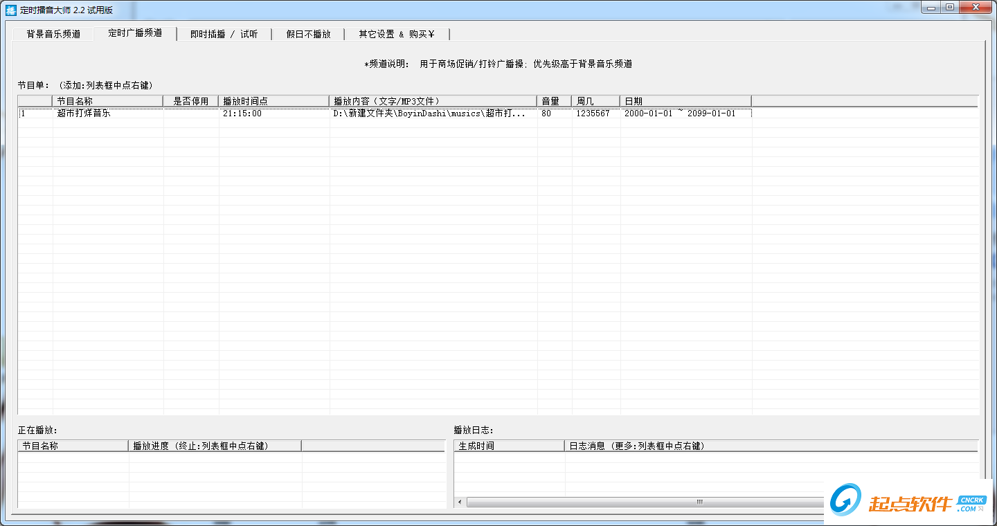 即時插播頻道,臨時插播或效果試聽,優(yōu)先級最高;