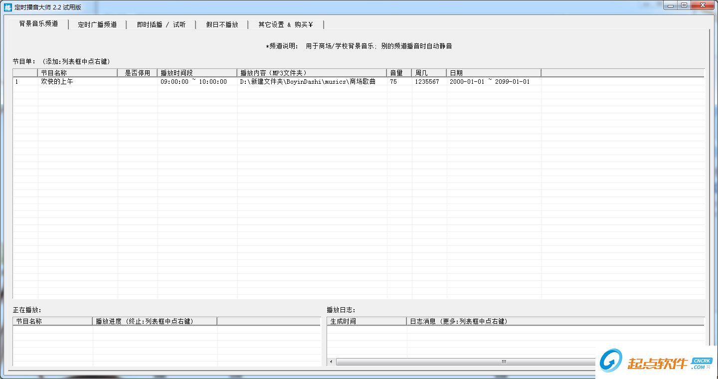 時方定時播音大師是一款專業(yè)的電腦定時播音軟件。該軟件帶有超專業(yè)的播音效果和頂級的語音庫,與淡淡的背景音樂相融合,定時開機播報,還可定時關(guān)機,為使用者提供一套簡單又好用的商場播音系統(tǒng)。