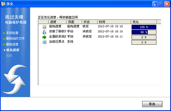 2.雨過天晴電腦保護(hù)系統(tǒng)創(chuàng)建進(jìn)度占用的系統(tǒng)資源比較少