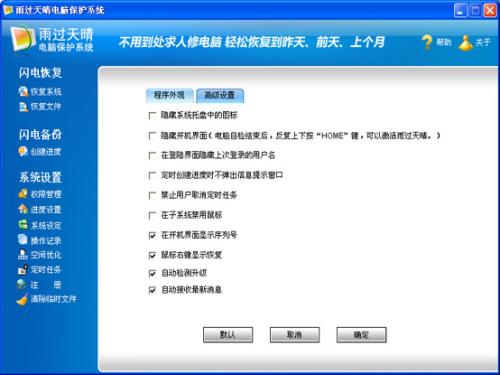 1.進(jìn)入雨過天晴電腦保護(hù)系統(tǒng)高級(jí)設(shè)置界面;