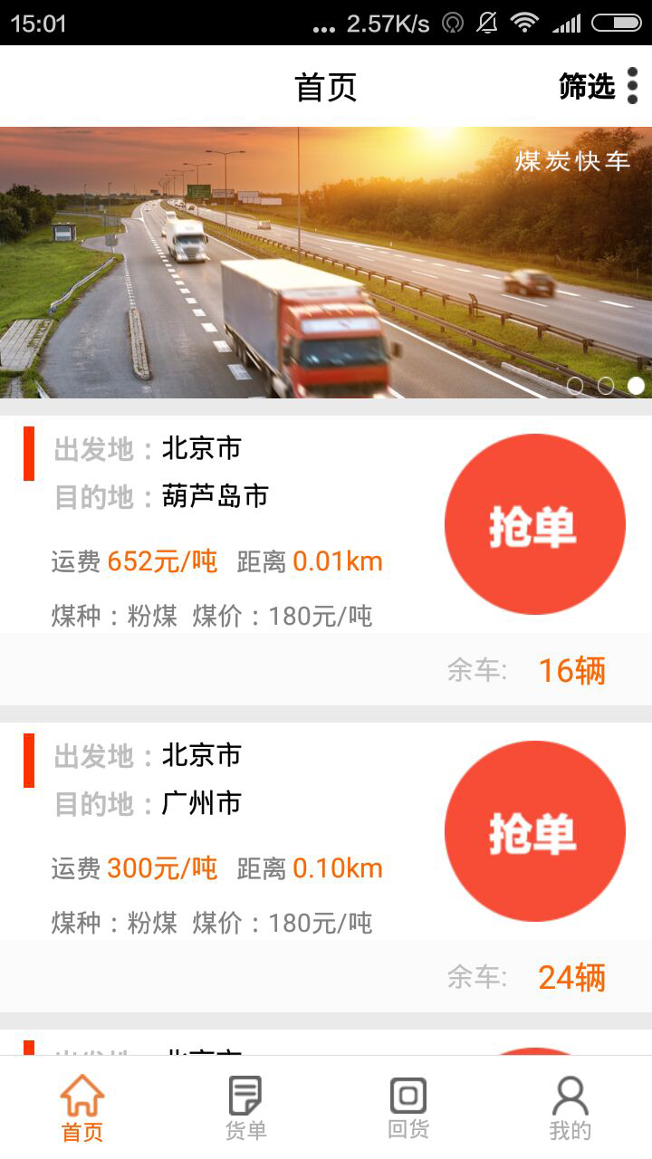 煤炭快車始終秉承服務用戶思想,整合煤炭運輸核心資源,為司機提供煤礦搶單、返程信息、沿途優(yōu)惠、免費上保等一系列優(yōu)惠服務,且保證零收費使用。