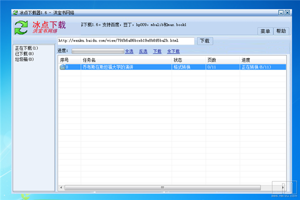 豆丁網(wǎng)免費下載器的界面很簡單,把要下載的文檔的網(wǎng)址輸入進去,按下“下載”就可以下載了,登錄啊積分啊什么都是浮云??!下載后“在已下載”中雙擊文件名就可以打開下載好的文檔所在的目錄了,軟件會自動將文檔轉(zhuǎn)換成.txt和.pdf兩種格式。