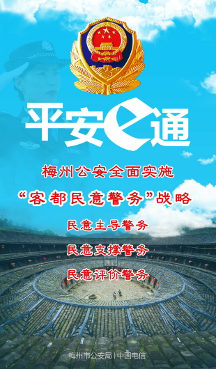 “平安e通”是梅州市公安局黨委貫徹落實黨的“十八大”精神和省委、省政府創(chuàng)建“平安廣東”部署,緊緊圍繞市公安局提出的“民意警務·客都模式”工作要求,整合公安服務信息資源,以免費服務公眾為原則,以積分換服務的模式,充分利用移動互聯(lián)網(wǎng)技術(shù),為人民群眾參與治安管理和公安機關(guān)主動服務群眾而建設(shè)的智能手機應用平臺。