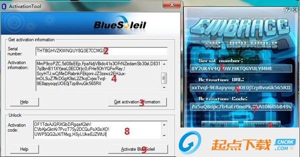 6、將復(fù)制的內(nèi)容粘貼在ActivationTool中編號8所示位置,并點擊ActivetionBlueSoleil即可。
