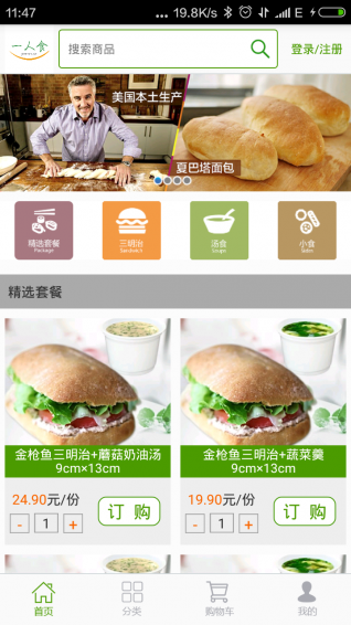 一人食是由河南一人食餐飲管理有限公司建立的專業(yè)進(jìn)口餐飲外賣服務(wù)平臺(tái),采用從跨境電商泰購(gòu)(tykou.cn)購(gòu)買的美國(guó)原裝進(jìn)口夏巴塔面包(無任何防腐劑和人工添加劑,美國(guó)農(nóng)業(yè)部USDA認(rèn)證)、美國(guó)原裝進(jìn)口金槍魚罐頭、蛋黃醬等多種配料,由專業(yè)廚師現(xiàn)烤現(xiàn)做,為您提供美味營(yíng)養(yǎng)的夏巴塔三明治和多款進(jìn)口美食。貴族般的夏巴塔三明治+環(huán)保餐盒臻品精裝+三刻鐘內(nèi)準(zhǔn)時(shí)送達(dá),同時(shí)滿足您的格調(diào)生活和便利生活。【軟件特點(diǎn)】