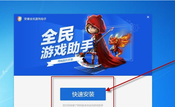 2、點(diǎn)擊開始安裝,會出現(xiàn)如圖所示提醒,選擇“開速安裝”,點(diǎn)擊之后就等待安裝結(jié)果啦,安裝時間根據(jù)游戲大小決定,一般4~5分鐘即可完成。