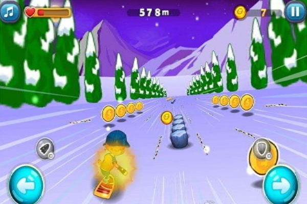 在雪山中有一項(xiàng)極限運(yùn)動(dòng)叫做滑雪,從山的最高頭開(kāi)始向下滑行,欣賞沿途的風(fēng)景。游戲的同時(shí),你還要躲避障礙物,或者是跳躍突起的山脈和地形,獲取路上的金幣,相應(yīng)的金幣可以在游戲商城里購(gòu)買(mǎi)你想要的道具。