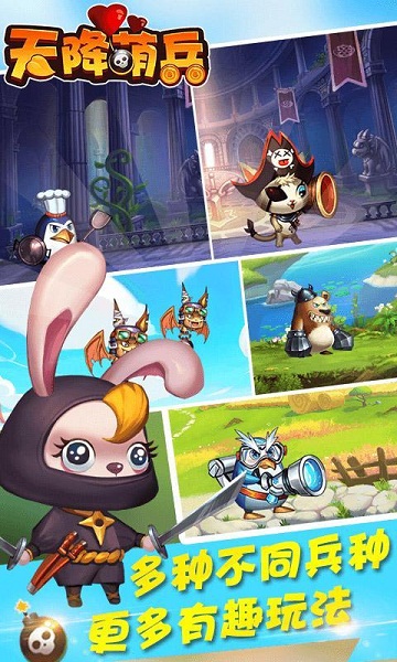 天降萌兵是一款策略塔防類游戲,玩家在游戲中將化身為萌軍的最高領袖,指揮各種各樣的戰(zhàn)士們對邪惡的怪物發(fā)起進攻,擊毀所有的炮塔、城墻,消滅大魔王守護人類的家園。